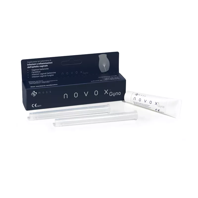 Dispositivo medico per favorire il ripristino della mucosa vaginale in presenza di processi infiammatori di origine batterica e/o fungina (vaginosi batterica, candidosi), con azione filmogena, protettiva e di contrasto della contaminazione da parte di patogeni (batteri e funghi). NOVOX GYNO aiuta la guarigione della mucosa grazie alla sua azione protettiva e di contrasto della contaminazione da parte degli agenti patogeni responsabili delle lesioni e delle infiammazioni. Inoltre, aiuta a mantenere il corretto livello di idratazione e ossigenazione della mucosa. NOVOX GYNO si presenta sotto forma di gel oleoso semiliquido.