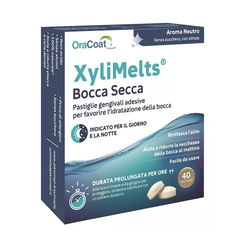 Pastiglia adesiva dall'aroma neutro completamente naturale che si scioglie lentamente in bocca e rilascia 500-550 mg di xilitolo e lubrificante orale.