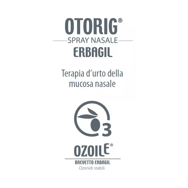 Dispositivo medico protettivo, decongestionante e igienizzante delle cavità nasali, specifico per la prevenzione e il trattamento delle affezioni rinofaringee sia acute che croniche caratterizzate da irritazione, gonfiore, prurito, bruciore, produzione eccessiva di muco. Formula innovativa, è un valido aiuto in caso sindromi influenzali, da raffreddamento, di natura allergica o da inquinanti ambientali e nei postumi operatori in ORL. Otorig spray nasale decongestiona le vie nasali, riduce l’ostruzione e regolarizza le secrezioni promuovendo uno scambio osmotico che favorisce il richiamo di fluidi dalla mucosa e fluidifica il muco facilitandone la rimozione. La sua formulazione con Ozoile mantiene ben idratata la mucosa e svolge un'importante azione igienizzante e protettiva creando un film lipidico mucoadesivo ostile alle alterazioni del microbiota che ripristina il buono stato delle cavità nasali.