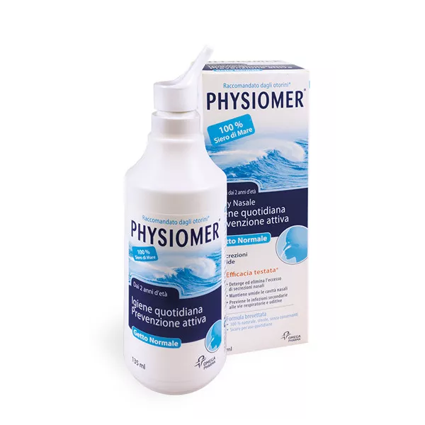 Il "siero di mare" Physiomer è composto al 100% da acqua di mare desalinizzata, ultrafiltrata e resa sterile in laboratorio, e conserva una combinazione completa di oltre 80 minerali ed oligoelementi, compresi calcio, magnesio, ferro, rame, manganese, zinco. Tutti questi minerali conferiscono a Physiomer un'azione anti-infiammatoria (che limita la diffusione delle infiammazioni) e rigenerante (effetto eutrofico), di gran lunga superiori a quelle delle comuni soluzioni saline. Physiomer allevia efficacemente i sintomi delle affezioni nasali e della zona sinusale dovuti ad infezioni alle vie respiratorie ed uditive, contribuisce alla riduzione dell'utilizzo di farmaci e riduce il manifestarsi di raffreddori e infezioni secondarie. Utilizzato quotidianamente, Physiomer umidifica la mucosa nasale e preserva il funzionamento naturale delle cavità nasali. Privi di agenti chimici e conservanti, i prodotti della linea Physiomer non pregiudicano il corretto funzionamento della mucosa nasale. La soluzione può essere utilizzata per periodi lunghi, ogniqualvolta necessaria senza alcun effetto collaterale o effetto rebound. Physiomer aiuta a ridurre l'utilizzo di decongestionanti a base di farmaci o antibiotici, che possono generare resistenza batterica.