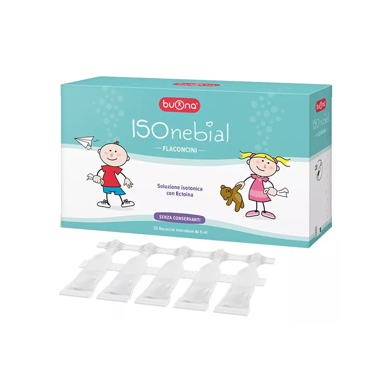 Isonebial flaconcini è composto da una soluzione isotonica (allo 0,9%) con aggiunta di ectoina, pronta all’uso. La soluzione isotonica ammorbidisce il muco favorendone l’eliminazione e migliorando la respirazione. Esercita inoltre una funzione di detersione della mucosa nasale in quanto promuove l’eliminazione di batteri, allergeni e agenti inquinanti presenti nell’aria, aiutando a mantenere le vie respiratorie in salute.