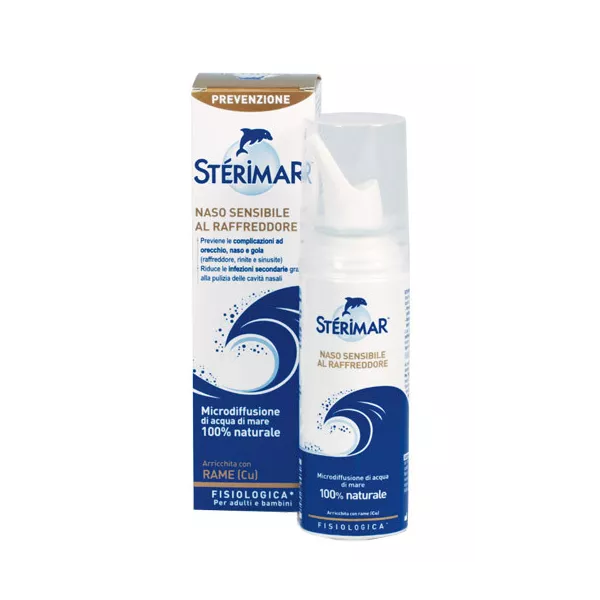 STÉRIMAR Naso sensibile al raffreddore Micro-diffusione fisiologica di acqua di mare che consente il lavaggio delicato della mucosa e facilita l'assorbimento degli elementi evitando la diffusione del muco.