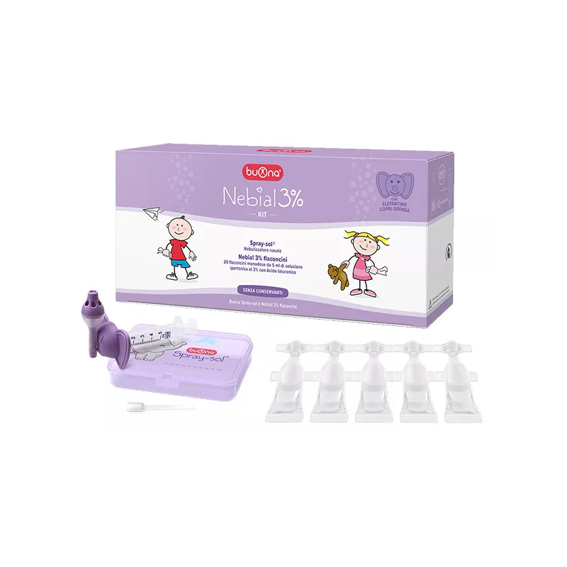 Nebial 3% KIT permette la nebulizzazione di Nebial 3% flaconcini, mediante il dispositivo medico Spray-sol (brevetto in licenza esclusiva Buona Spa Società Benefit).