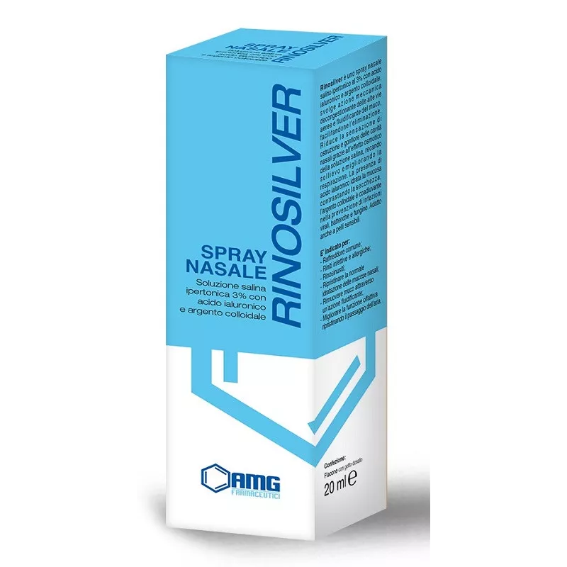 RINOSILVER SOLUZIONE SALINA IPERTONICA 3% CON ACIDO IALURONICO E ARGENTO COLLOIDALE SPRAY NASALE 20 ML