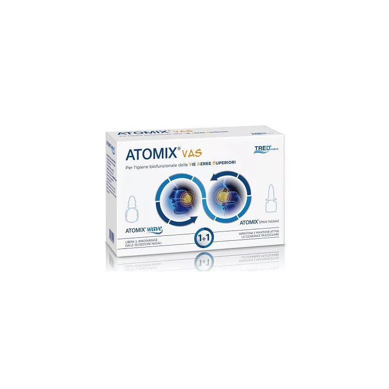 Igiene biofunzionale significa rimuovere il muco nel punto di maggiore accumulo e rallentarne la nuova formazione, ristabilendo le migliori condizioni per la corretta funzionalità nasale. L'ATOMIX wave libera il rinofaringe dalle secrezioni, mentre l'ATOMIX spray nasale ripristina e mantiene attiva la clearance mucociliare.