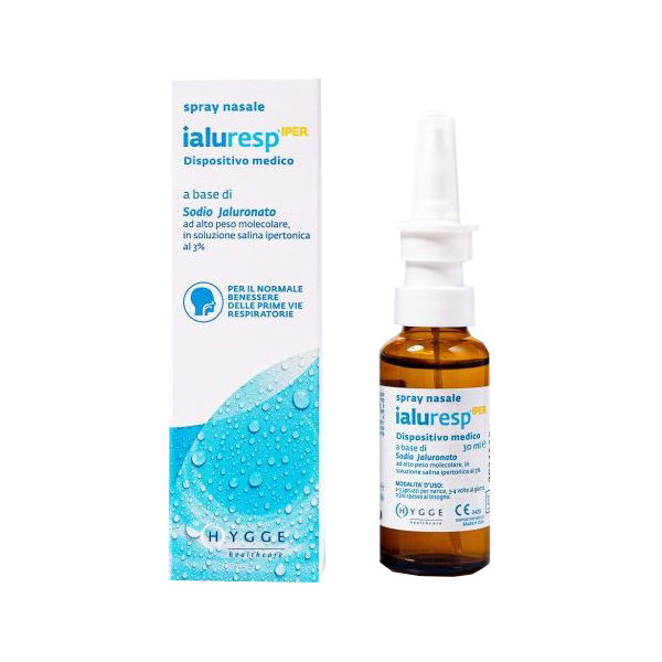Soluzione salina ipertonica al 3% a base di Sodio Jaluronato. In caso di ostruzione nasale e presenza di muco, svolge un’attività decongestionante e fluidificante sulle secrezioni, aiuta quindi la normale respirazione nasale. Ialuresp iper è indicato in caso di raffreddore e mucosa irritata in quanto riattiva la clearance mucociliare eliminando il biofilm batterico.