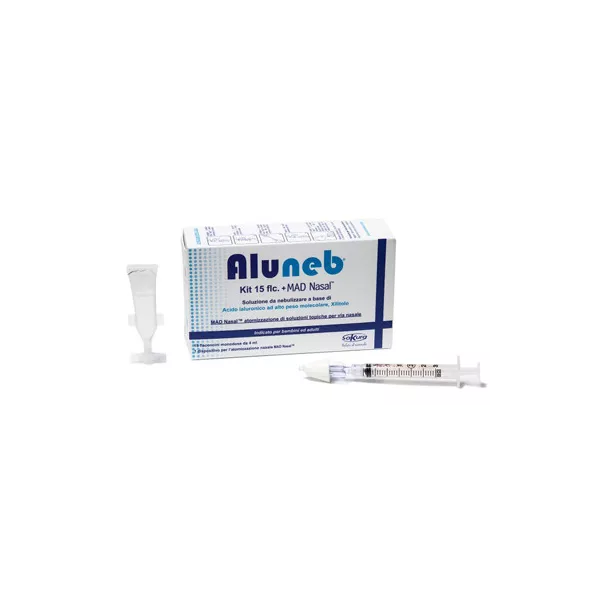 Aluneb è una soluzione da nebulizzare, mediante aerosol, doccia nasale e MAD Nasal a base di acido ialuronico ad alto peso molecolare e xilitolo, indicata nel ripristino e mantenimento delle condizioni fisiologiche della mucosa rino-oro-faringea.