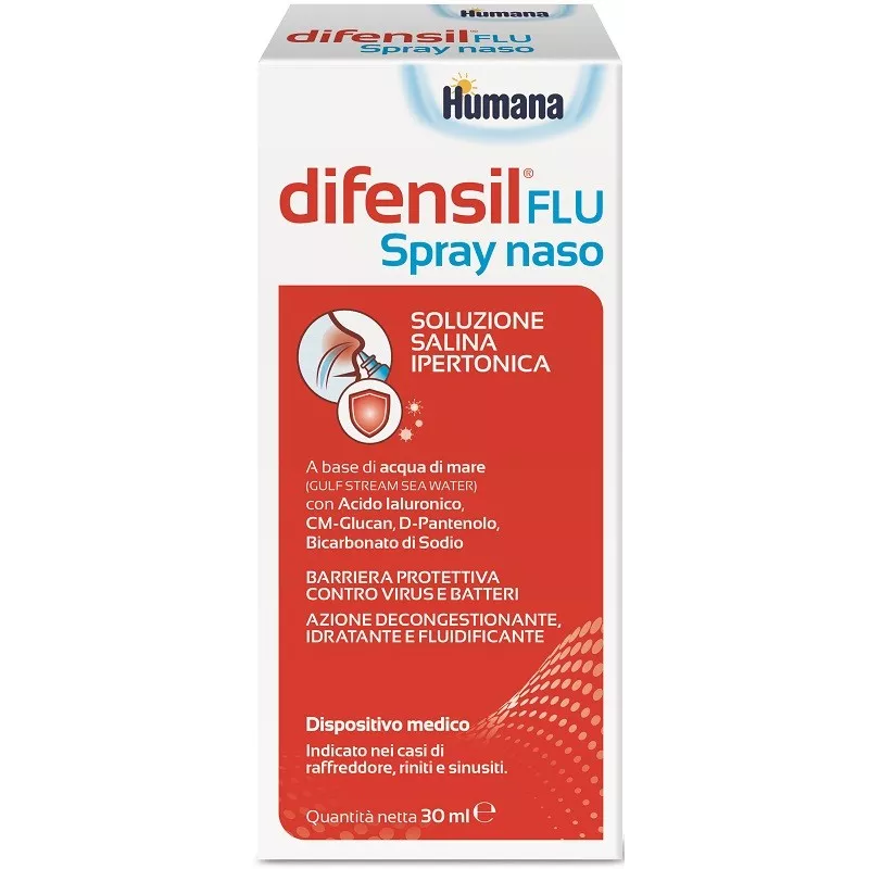 Soluzione salina ipertonica al 3% a base di acqua di mare, arricchita con acido ialuronico, CM-glucn, D-pantenolo e bicarbonato di sodio, indicata nei casi di raffreddore, rinite allergica, rinosinusite e sinusite.