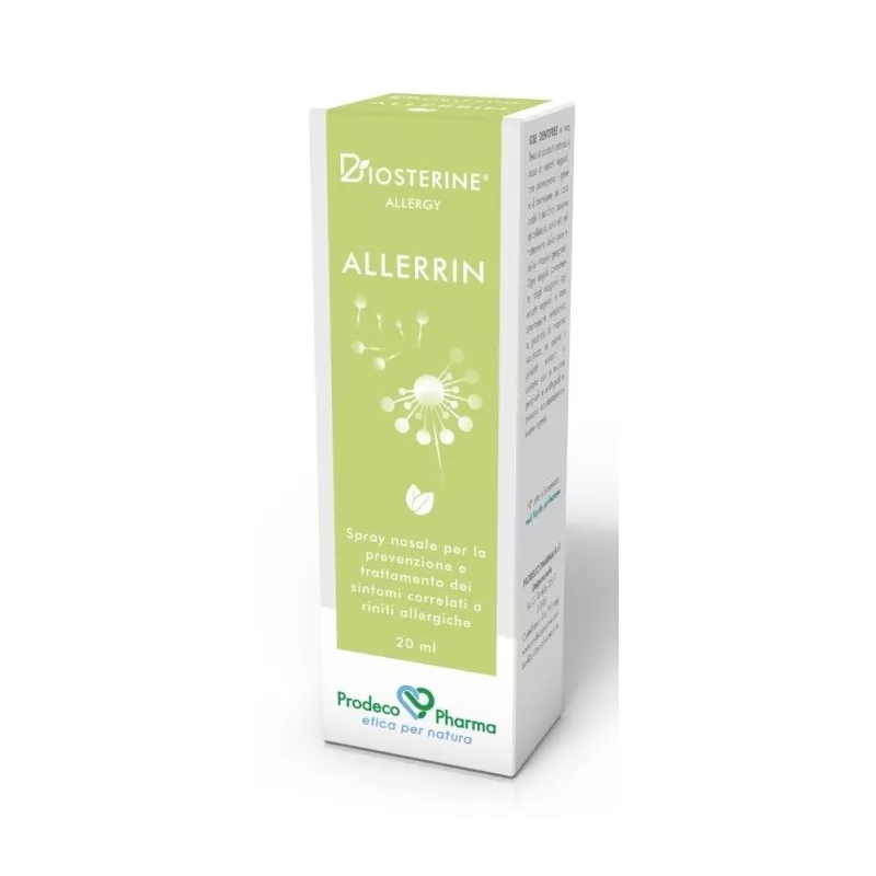 Soluzione rinologicaisotonica, a pH fisiologico, indicata per il trattamento e la prevenzione dei sintomi correlati a riniti allergiche. La soluzione rinologica nebulizzata nelle cavità nasali, grazie alla presenza dell’Acido ialuronico, crea un film ad effetto barriera che protegge la mucosa nasale dal contatto con gli allergeni ambientali. L’effetto filmogeno protettivo, accompagnato dalla presenza di Biosterine (fitocomposto costituito da Basilico santo e Salvia officinale, titolato al 40% in Acido rosmarinico) e degli estratti di Perilla, Cappero, Ninfea e The rosso, svolge un’azione decongestionante, emolliente e lenitiva che allevia i fastidi dovuti ad irritazione ed infiammazione e contribuisce alla normalizzazione delle funzioni fisiologiche della mucosa nasale, grazie anche all’isotonicità della formulazione. AllerRin Biosterine Spray Nasale, per la presenza di Glicerina vegetale, coadiuva inoltre il ripristino del giusto livello di idratazione della mucosa, limitandone l’iperreattività.