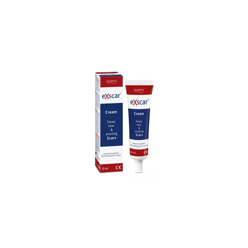 EXSCAR Crema e indicato per il trattamento di cicatrici nuove e preesistenti, causate da acne, bruciature, ferite, infezioni della pelle, operazioni chirurgiche e cicatrici ipertrofiche.
