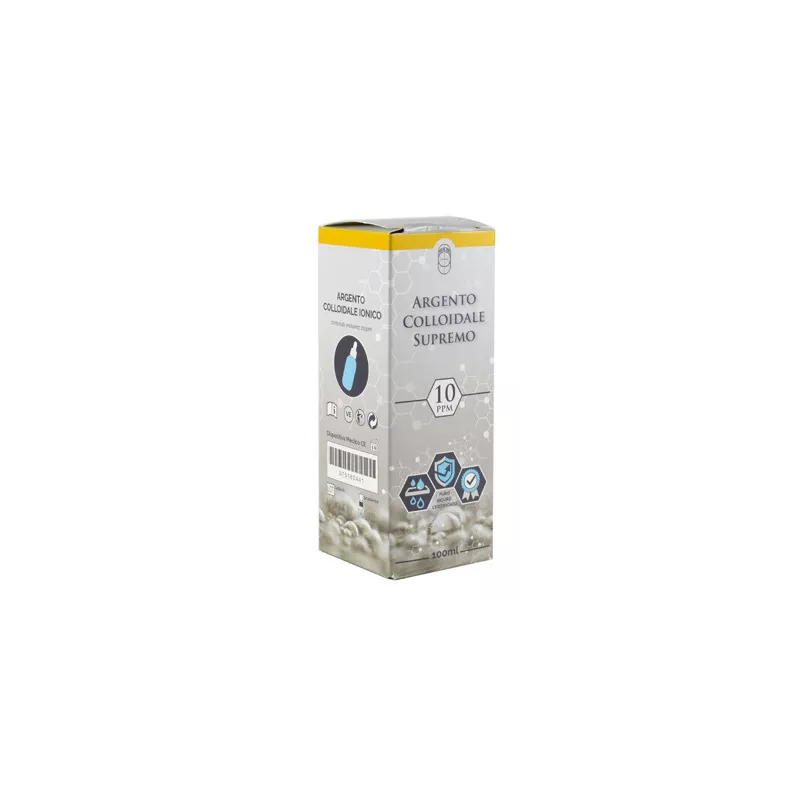 Argento Colloidale Ionico è un dispositivo medico con funzione anti-batterica. Argento Colloidale Supremo in forma ionica rende il prodotto più efficace ed attivo.