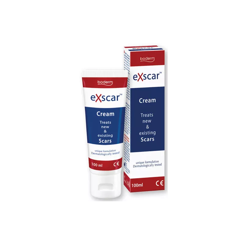 EXSCAR Crema e indicato per il trattamento di cicatrici nuove e preesistenti, causate da acne, bruciature, ferite, infezioni della pelle, operazioni chirurgiche e cicatrici ipertrofiche.