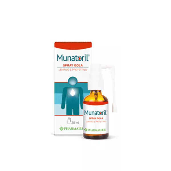 Munatoril Spray Gola è un Dispositivo Medico indicato per alleviare l'irritazione della gola associata a dolore, bruciore e sensibilità alla deglutizione.