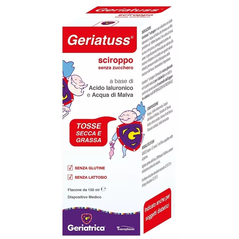 Geriatuss sciroppo è formulato senza glucosio ed è quindi indicato per i diabetici e in tutti in casi in cui sia necessario il controllo dell’apporto calorico.