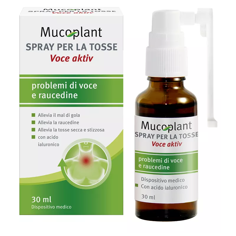 Spray per la tosse con ingredienti vegetali, estratto di altea e muschio islandese, crea un film protettivo sulle mucose della gola e allevia rapidamente i problemi vocali, raucedine e tosse irritante. L’acido ialuronico idrata le mucose.