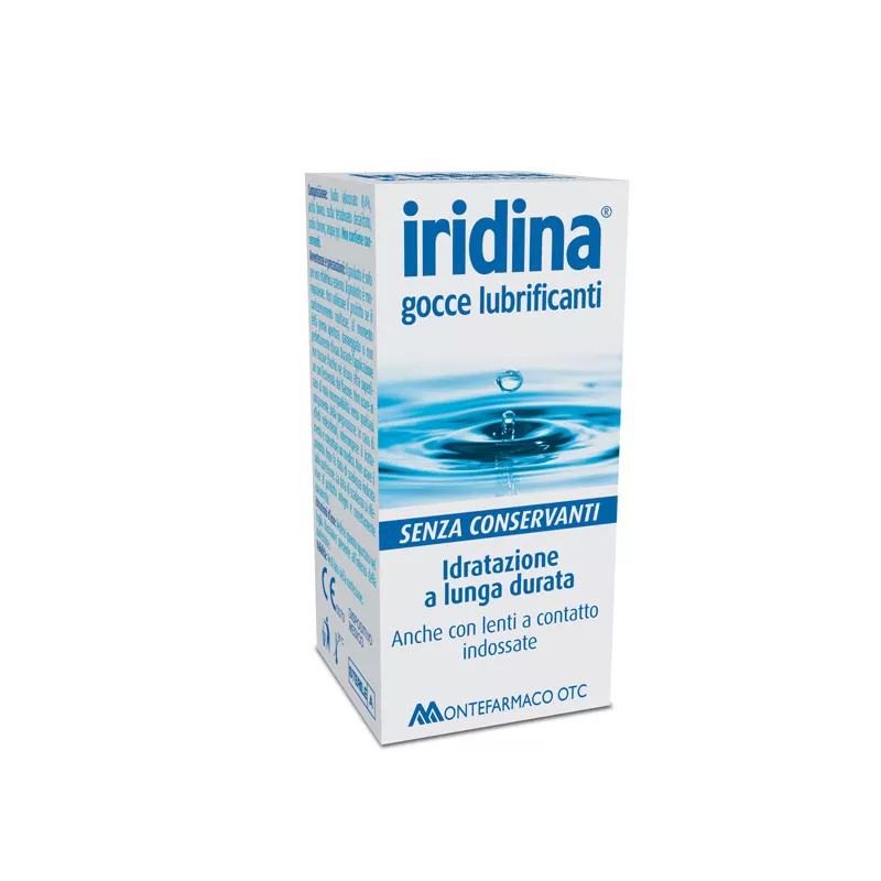 Pertanto, Iridina svolge un'azione idratante e lubrificante per la superficie oculare e dà un temporaneo sollievo al bruciore, all'irritazione ed ai disagi correlati alla secchezza oculare.