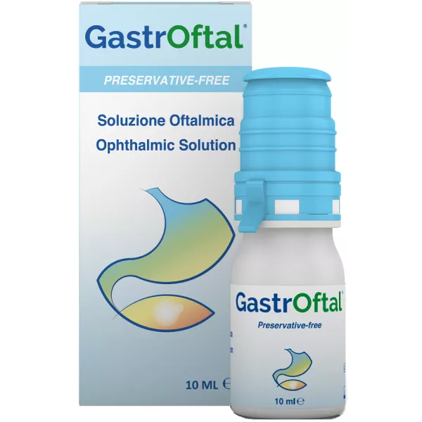 Gastroftal, grazie alla sinergica associazione di acido ialuronico, alginato di magnesio e di estratto di Camellia sinensis (tè verde), idrata, lubrifica e protegge la superficie oculare sia da agenti esterni (es.: raggi ultravioletti, vento, polvere, smog, lenti a contatto, etc.), che da sostanze endogene, come, ad esempio, gli enzimi proteolitici (pepsina) che si associano a patologia da reflusso gastro-esofageo.