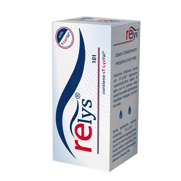 Relys è indicato in tutte le forme di occhio secco (lieve-moderato-severo), affaticamento visivo/uso prolungato dei videoterminali, arrossamento, lacrimazione eccessiva, bruciore e prurito degli occhi causati da fenomeni irritativi (eccessiva esposizione a polvere, fumo, vento, sole, guida, ecc.), sensazione di sabbia negli occhi.
