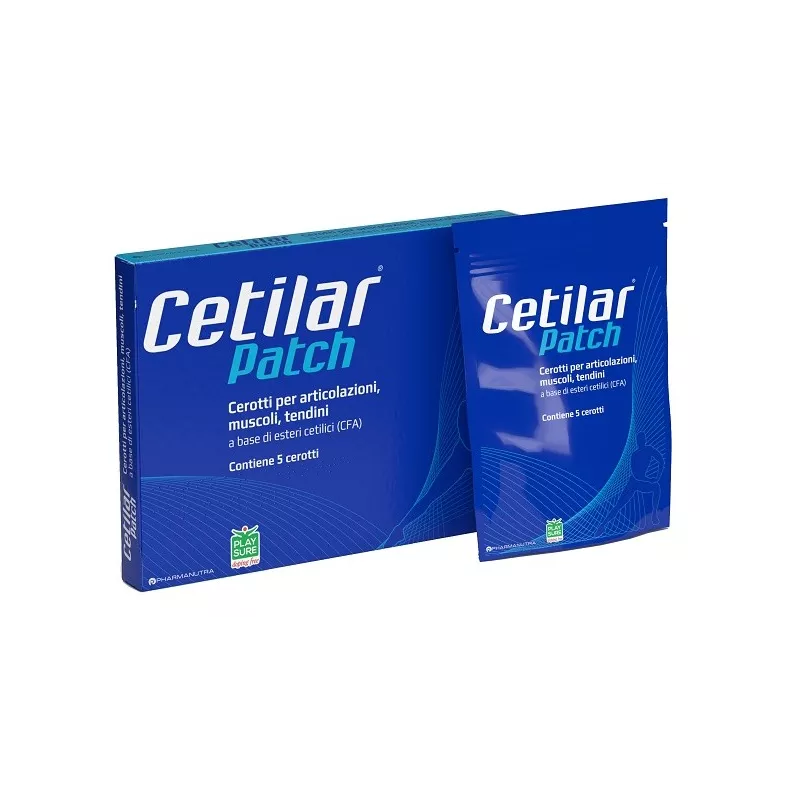 Cerotto ad azione locale per il benessere di muscoli e articolazioni. Grazie alla sua formulazione brevettata a base di esteri cetilati (CFA), Cetilar Patch contribuisce al recupero della capacità di movimento e della funzionalità articolare, oltre che alla riduzione della sintomatologia dolorosa in caso di traumi, contusioni, stiramenti, contratture e distorsioni. I cerotti aderiscono perfettamente alla pelle e non provocano irritazioni. La loro azione a lento rilascio permette agli esteri cetilati di agire nell’arco di 8 ore sulla zona interessata, donando una sensazione di sollievo prolungata. Cetilar Patch svolge anche un’azione emolliente grazie alla natura lipidica della sua formulazione, inoltre, la presenza del mentolo conferisce al prodotto una fresca profumazione, rendendolo gradevole all’olfatto.