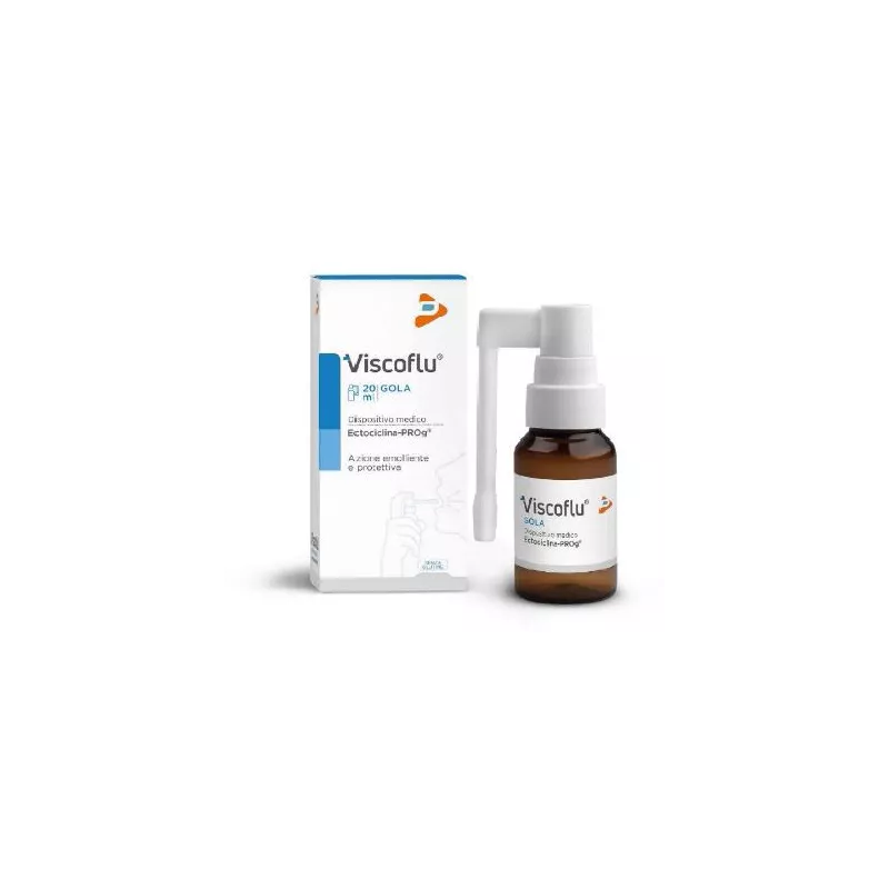 protegge la mucosa faringea e orale attraverso l'azione fisico-chimica della miscela Ectociclina-PROg in esso contenuta, nella quale: