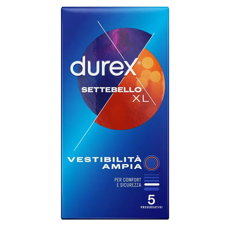 I preservativi Durex Settebello XL sono adatti per il comfort di coloro che preferiscono una taglia più larga rispetto ai normali preservativi in lattice Durex.