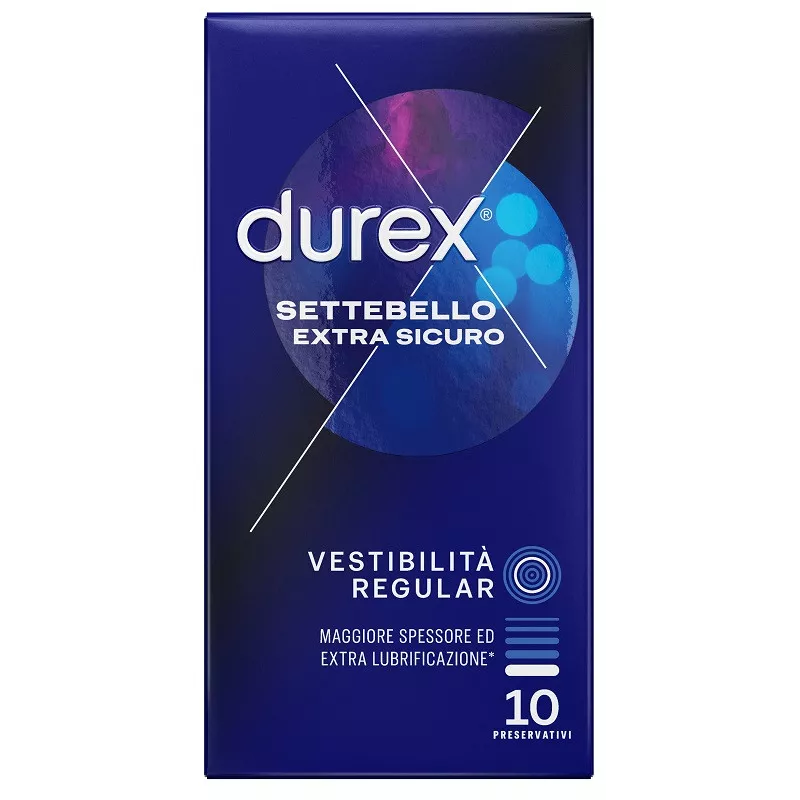 I preservativi Durex Settebello Extra Sicuro sono extra lubrificati, leggermente più spessi*, con forma Easy-On per un maggiore comfort.