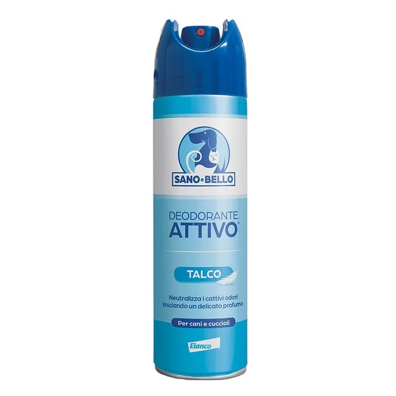 Il DEODORANTE ATTIVO al talco neutralizza i cattivi odori lasciando un delicato profumo di pulito. La sua composizione e il suo profumo al talco lo rendono gradito a tutti i tipi di cane. Adatto anche per i cuccioli.