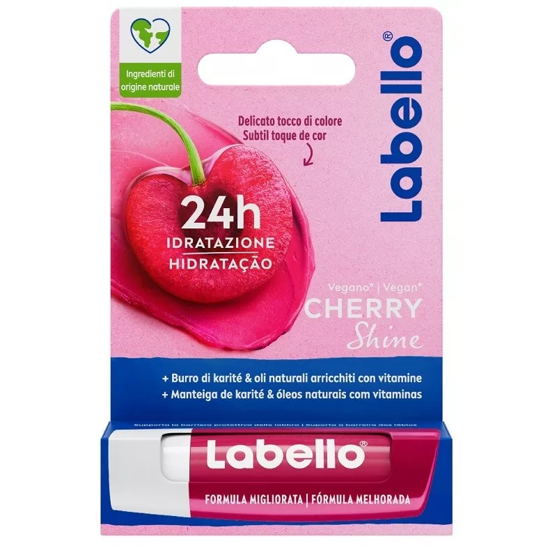Balsamo labbra. Delizia le labbra con un dolce aroma di ciliegia e un delicato tocco di colore rosso scintillante. La sua formula senza oli minerali, paraffine e parabeni è arricchita con oli naturali. Si fonde istantaneamente con le labbra, per donare un'idratazione intensa e duratura per 24 ore clinicamente testata. I pigmenti selezionati scintillanti donano un delicato tocco di colore sulle labbra. Facile da applicare in modo uniforme. Compatibilità cutanea dermatologicamente comprovata. Senza oli minerali e paraffine, senza parabeni, con oli naturali.