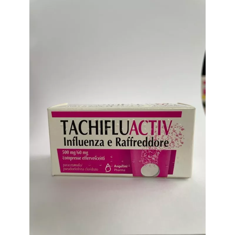 TACHIFLUACTIV INFLUENZA E RAFFREDDORE contiene i principi attivi paracetamolo e pseudoefedrina che agiscono contro il dolore, la febbre e il naso chiuso.