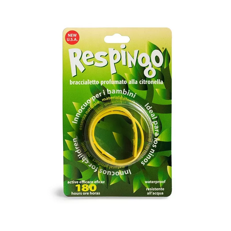 Collocare il braccialetto al polso, caviglia, cintura, autovettura o passeggino con la parte scritta verso l'esterno. Infilare la punta con la freccia nell'apertura. Stringere alla misura del proprio polso, collocando la freccia nell'apertura desiderata del braccialetto. Lasciare agire per 10-15 minuti prima di uscire all'aria aperta. Se non viene utilizzato è opportuno collocarlo nell'apposita custodia e chiudere ermeticamente, viene così prolungata l'efficacia del braccialetto. La plastica utilizzata per il braccialetto è riciclabile.