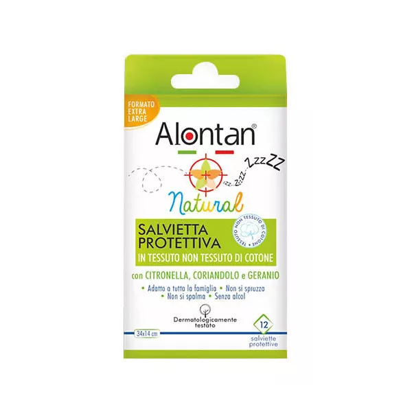 Salviettine realizzate in un morbidissimo tessuto non tessuto di cotone, delicatissimo sulla pelle. Non untuose, sono a base di oli essenziali derivati da sostanze vegetali, dalle note proprietà fito-repellenti (coriandolo, citronella, geranio, timo, lavanda). La delicata formulazione consente l'uso anche sulla cute sensibile del bambino.