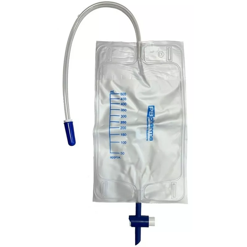 Il design ergonomico della sacca consente il fissaggio alla gamba tramite 2 cinturini (opzionali), rendendola ideale sia per l'uso domiciliare che ospedaliero.