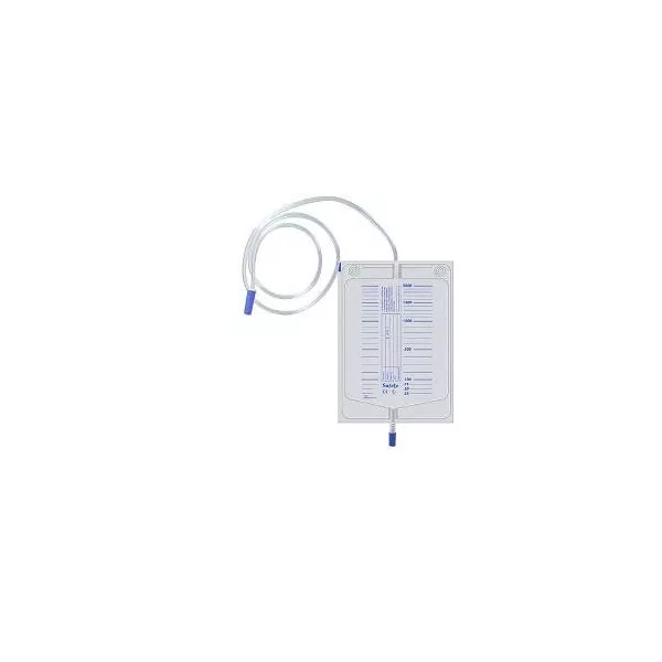 SACCA DRENAGGIO URINARIO A CIRCUITO CHIUSO, CAPACITA' 2000ML, GRADUATA, TUBO DI COLLEGAMENTO LARGO PER PREVENIRE LE INFEZIONI. P