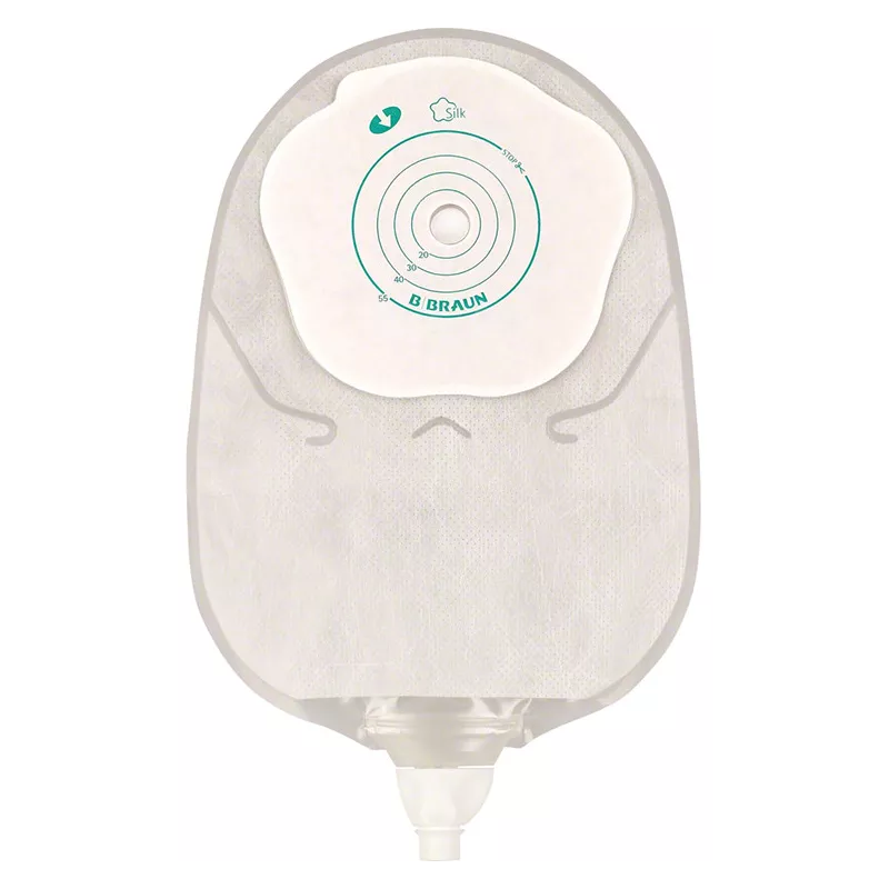 SACCA UROSTOMIA MONO PEZZO CON PROTETTORE CUTANEO E ADESIVO MICROPOROSO CON RUBINETO E VALVOLA ANTIREFLUSSO SILK MISURA 12/55MM