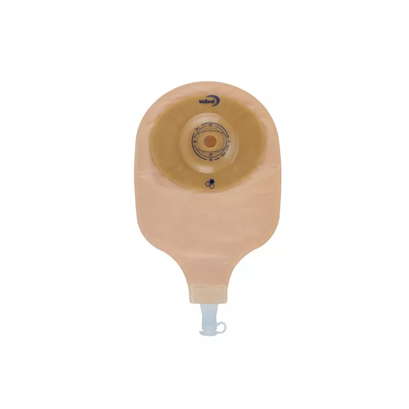 Sacca per urostomia monopezzo con rubinetto, anatomica, dotata di barriera protettiva autoportante con convessità morbida contenente miele di Manuka, filtro deodorante, rivestita sui due lati da un morbido tessuto non tessuto e dotata di finestra per ispezione della stomia (nel modello trasparente il rivestimento è solo lato pelle), sul lato esterno è rivestita da uno specifico materiale che riduce i rumori derivanti dall'attrito della sacca con gli abiti. L'idrocolloide con miele di Manuka ha un'esclusiva azione protettiva e curativa per la cute con evidenze cliniche supportate dalla letteratura ed è ipoallergenico.
