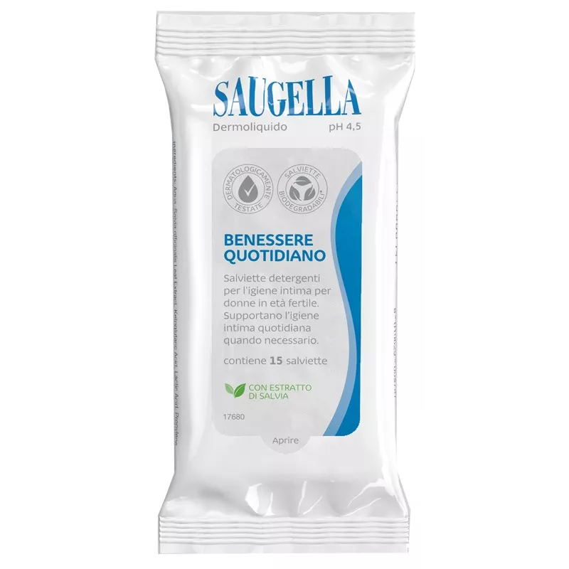 Salviette morbide e resistenti, biodegradabili, formulate con una soluzione detergente contenente estratto di salvia ricco di polifenoli ad attività antiossidante, rinfrescante e tonificante.