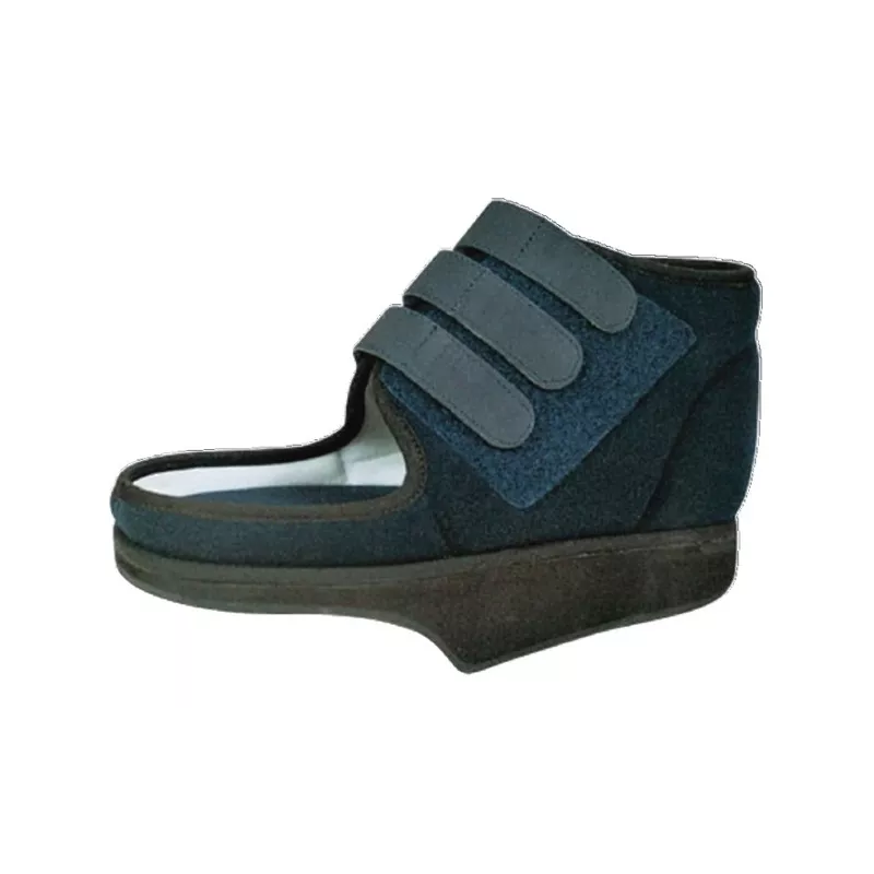 La scarpa è ambidestra, con suola antiscivolo e angolata per scaricare il peso del corpo dall'avampiede. La calzata è ampia, per permettere alla scarpa di contenere il piede fasciato. Le fascette regolabili facilitano l'apertura/chiusura della scarpa. Con rinforzo confortevole e avvolgente nel retro del piede.