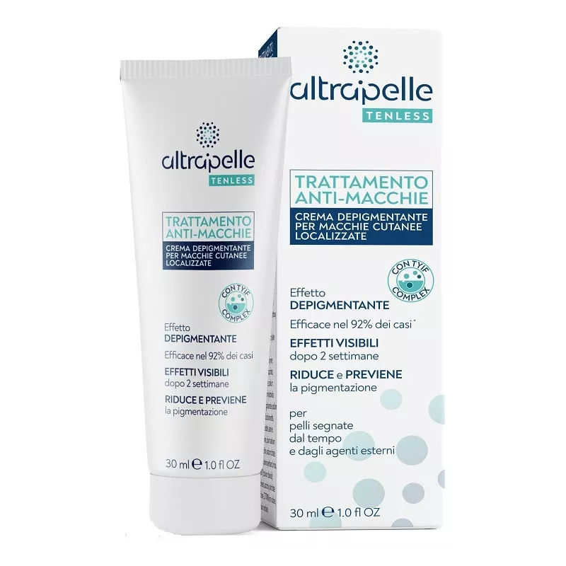 Crema depigmentante per macchie cutanee localizzate. Trattamento anti-macchie per pelli segnate dal tempo e dagli agenti esterni. Schiarisce e riduce le macchie cutanee.