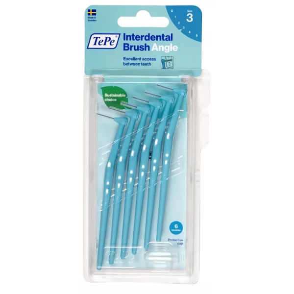 TePe Angle dispone di una testina angolata per un facile accesso agli spazi dei denti posteriori. Può essere utilizzato sia dall’esterno che dall’interno.