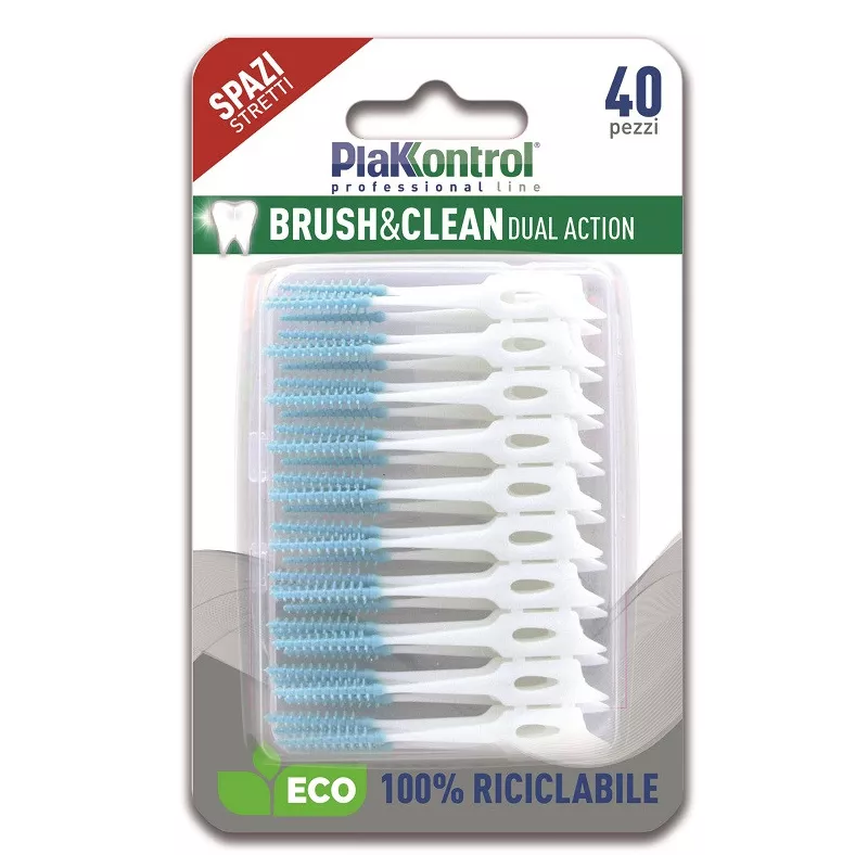 - è sicuro da utilizzare: l’anima realizzata in materiale plastico estremamente flessibile e le setole morbide come la gomma, rendono impossibile ferire la gengiva o danneggiare lo smalto dei denti. Grazie a queste caratteristiche Plakkontrol Brush & Clean è inoltre lo strumento ideale per sostituire l’utilizzo dello stuzzicadenti, un’abitudine del dopo pasto ancora assai radicata ma potenzialmente pericolosa;