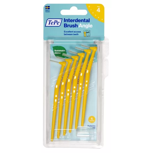 TePe Angle dispone di una testina angolata per un facile accesso agli spazi dei denti posteriori. Può essere utilizzato sia dall’esterno che dall’interno.