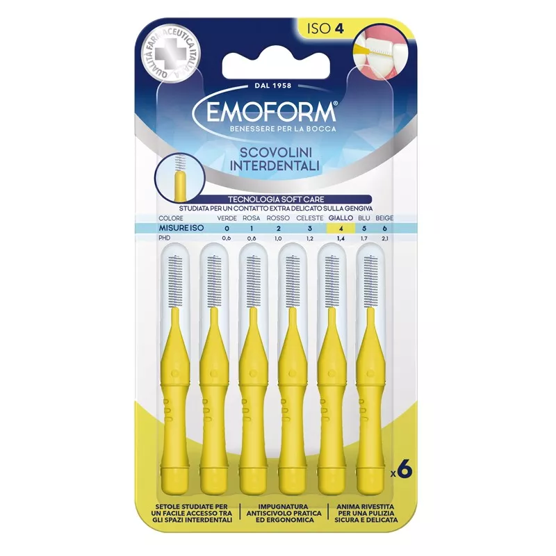 Scovolino dotato di setole studiate appositamente per arrivare su tutti gli spazi interdentali, con tecnologia Soft Care per un contatto delicato su gengiva e dente.