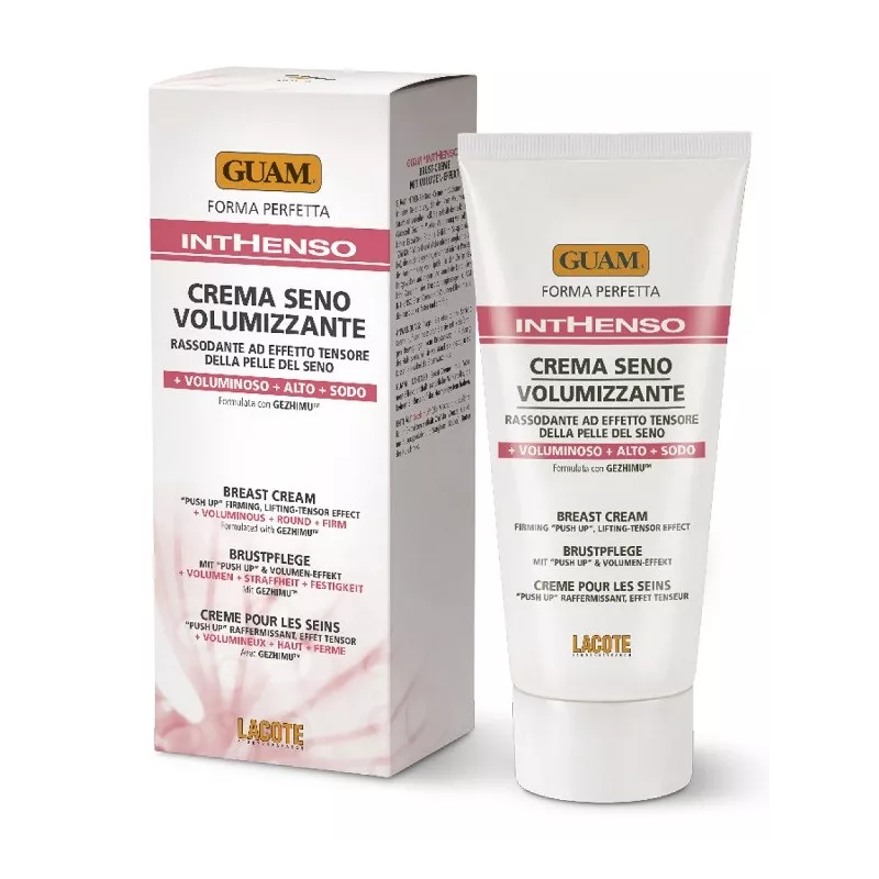 Trattamento completo studiato per dare tono e volume al seno. Contiene l'esclusivo principio attivo Gezhimu, associazione di estratti vegetali (alga rossa Gelidium sesquipedale, radice di "Zhi Mu" e Sorghum bicolor) in grado di stimolare un naturale processo di accumulo di lipidi nelle cellule del tessuto adiposo sottocutaneo. GUAM INTHENSO Crema Seno Volumizzante ha così la proprietà di rendere il seno più voluminoso, più alto, più sodo.