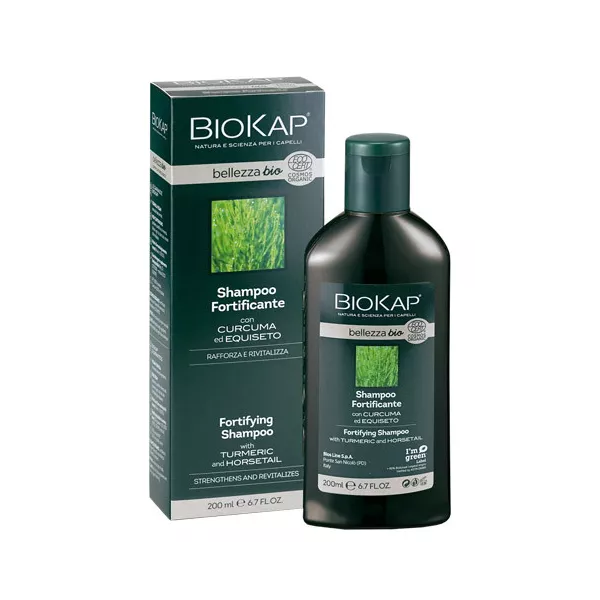 Lo Shampoo Fortificante BioKap Bellezza bio rivitalizza i capelli. La sua formula contiene uno speciale attivo, a base di estratto di curcuma ed equiseto, ricco in silicio, che rinvigorisce e rafforza i capelli, donando loro un aspetto più corposo. I tensioattivi vegetali da cocco, detergono in maniera delicata rispettando l'equilibrio del cuoio capelluto.