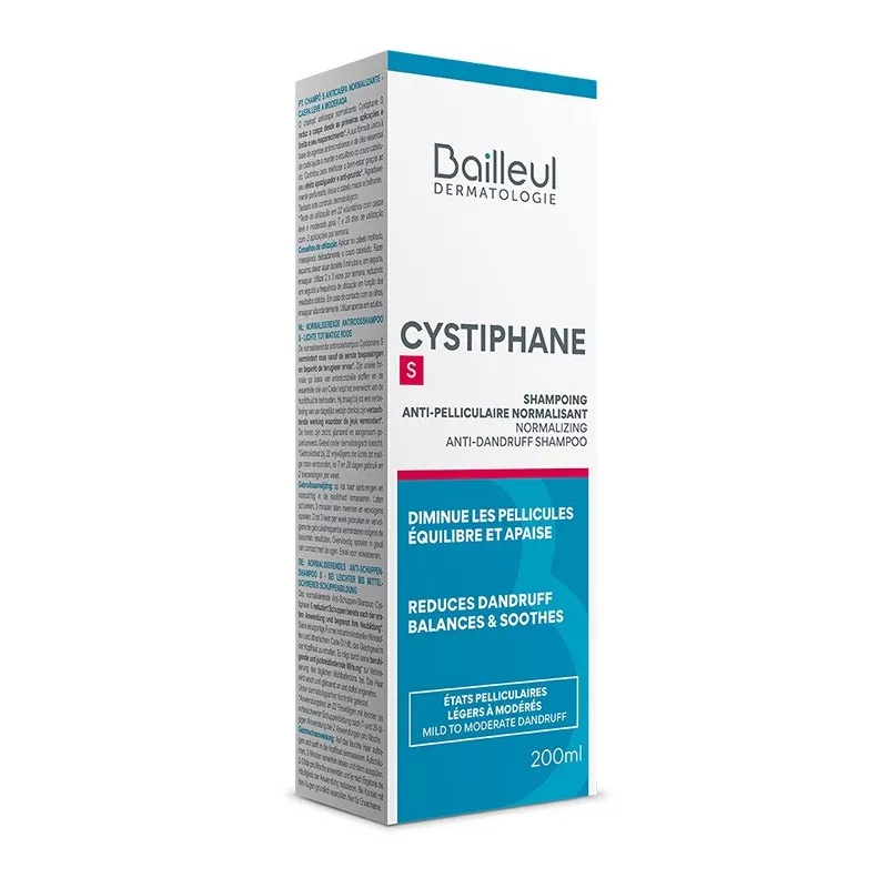 La formula di Cystiphane Shampoo Antiforfora Normalizzante S è indicata contro le condizioni di forfora moderata. La sua combinazione unica di agenti antimicrobici, climbazolo e miconazolo, aiuta a mantenere un cuoio capelluto sano. Arricchito con acido salicilico, un potente principio attivo cheratolitico, lo shampoo Cystiphane S aiuta a ridurre la forfora e a prevenirne la formazione. L'olio essenziale di Cade e il 4-terpineolo (attivo essenziale dell'albero del tè) leniscono e calmano la sensazione di prurito. Piacevolmente profumato, lo shampoo Cystiphane S lascia i capelli morbidi e lucenti. La sua schiuma cremosa facilita il risciacquo.