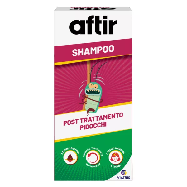 Shampoo che consente una detersione specifica del capello e del cuoio capelluto come complemento cosmetico del trattamento antiparassitario Aftir Gel, contribuendo a creare un ambiente sfavorevole ai pidocchi.