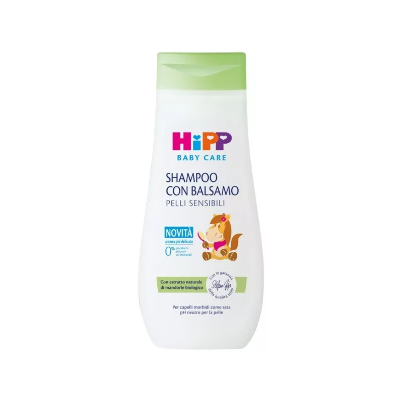 Shampoo con balsamo per capelli setosi, senza nodi e facili da pettinare. Appositamente sviluppato per i capelli dei bambini. Protegge il cuoio capelluto sensibile del bambino e non brucia gli occhi.