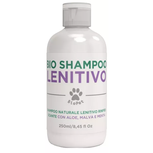 Shampoo naturale lenitivo rinfrescante con aloe, malva e menta. Particolarmente delicato sulla cute e sul pelo, può essere utilizzato per lavaggi frequenti sia su cuccioli che anziani. Adatto per ogni taglia e lunghezza del pelo.