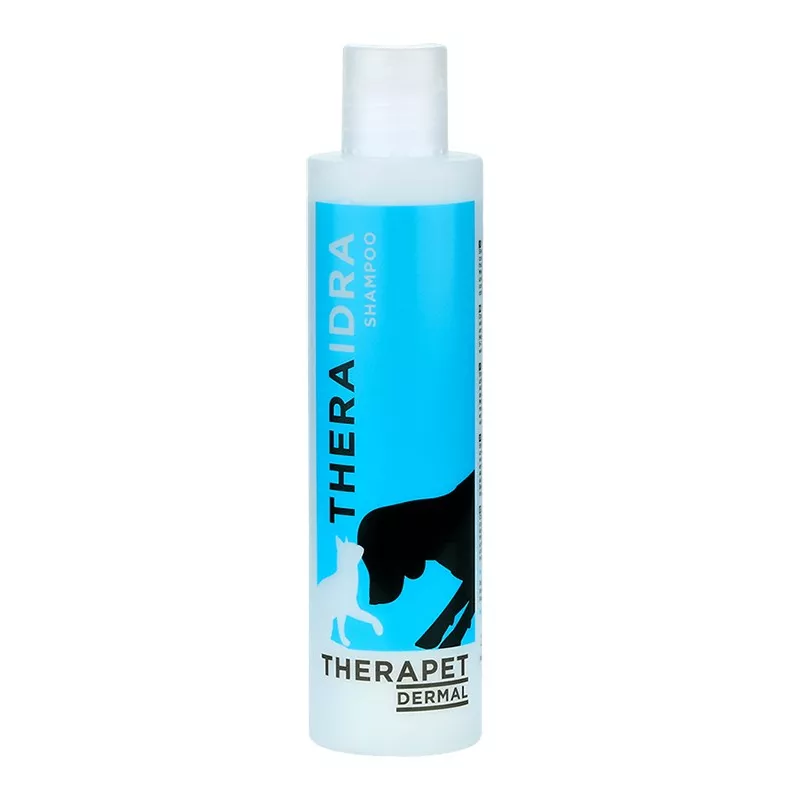 Shampoo per cani e gatti formulato con acido glicirretico, pantenolo, palmitoiletanolamide (PEA), vitamina E, ceramidi emollienti ed aloe vera per la detersione delicata del manto.