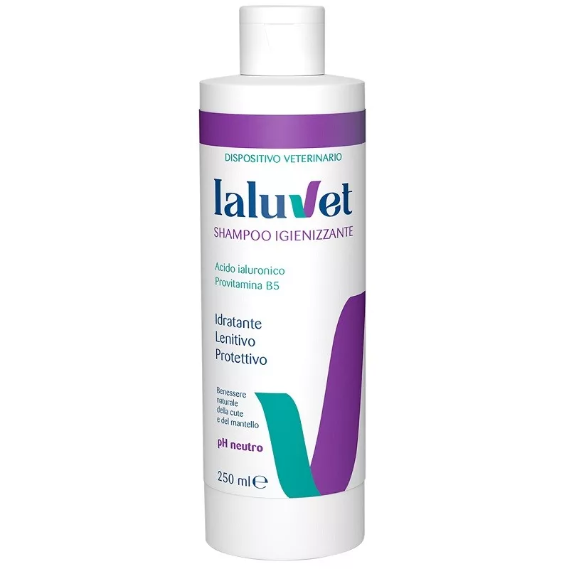 Shampoo ortodermico a pH neutro, formulato con agenti di controllo microbico e indicato per il benessere naturale della cute e del mantello. Grazie alla sua formulazione delicata, Ialuvet Shampoo Igienizzante risulta di valido aiuto in tutte le condizioni di disagio dermatologico dell'animale per le quali è richiesta un'azione battericida nei confronti di germi patogeni. Indicato in caso di interventi chirurgici e di lacerazioni cutanee di tipo traumatico, anche da grattamento. Coadiuvante nel processo di riparazione cutanea, esercita un'azione idratante prolungata nel tempo. Protegge la pelle dagli agenti esterni (anti-pollution tested), donando all'animale un aspetto sano e una sensazione immediata di sollievo.